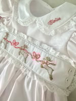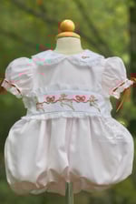• Dress and bubble are completely lined in white batiste and buttons at its back for easy changing - all buttons are stitched on with red thread for a fun pop of color, too!